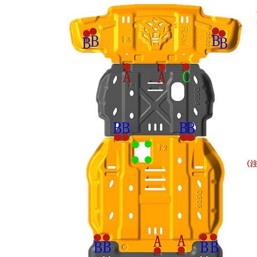 Le paquet: | Boîte en carton; 4 pièces par ensemble: plaque de dérapage du radiateur, plaque de dérapage du moteur, plaque de dérapage de la transmission, plaque de dérapage du boîtier de transfert. |